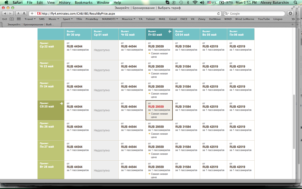 Если вы потратите немного времени, проведя его на сайте emirates.com и зададите параметры поиска рейсов на майские праздники с гибкими датами, то можете стать обладателем билетов Москва - Маврикий - Москва стоимостью менее 30000 руб..!